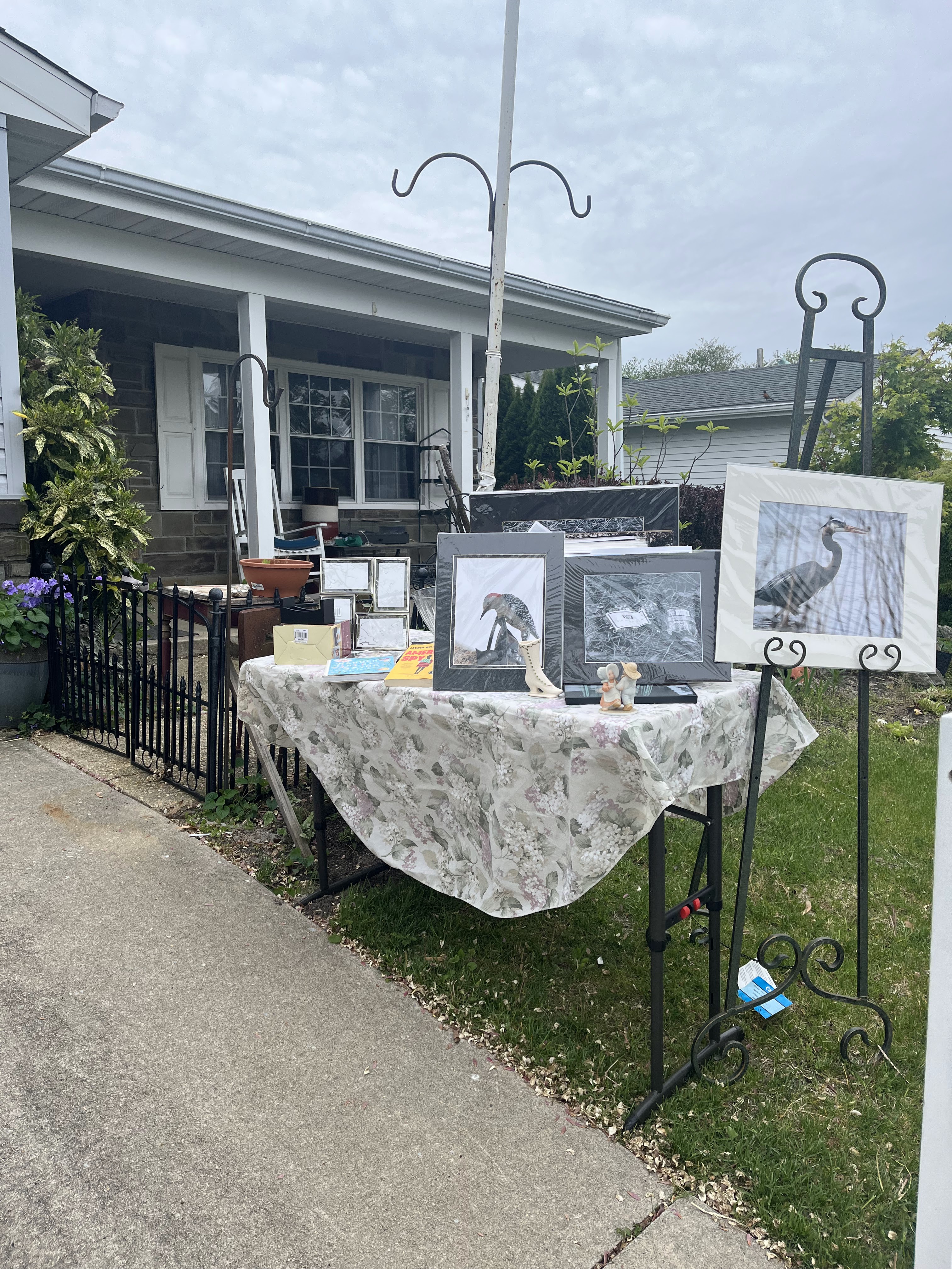 Saturday was our community yard sale and I was ready for that as soon as the sun didn't shine. Yep it was cold, damp and cloudy with the threat of rain hovering all day. Still I had a good day, in fact better then Thursday and easier too.I liked my set up so much I took a few pictures just to show and tell.